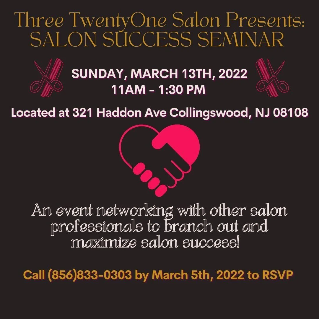 Mar 13 11:00 AM11:00 Business Salon Success Seminar Sunday, March 13, 2022 11:00 AM 1:30 PM 11:00 13:30 Three TwentyOne Salon (map) Google Calendar ICS View Event →